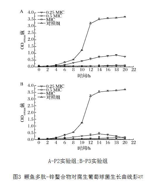 圖3鱖魚(yú)多肽-鋅螯合物對(duì)腐生葡萄球菌生長(zhǎng)曲線影響