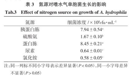 表3氮源對嗜水氣單胞菌生長的影響