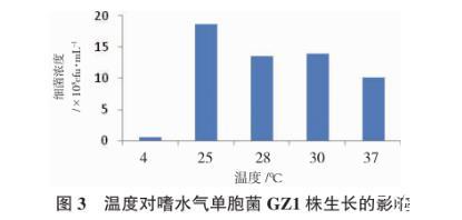 圖3溫度對嗜水氣單胞菌GZ1株生長的影響