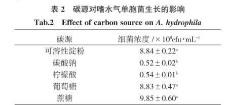 表2碳源對嗜水氣單胞菌生長的影響
