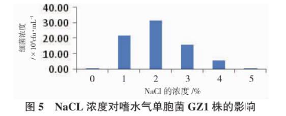圖5 NaCL濃度對嗜水氣單胞菌GZ1株的影響