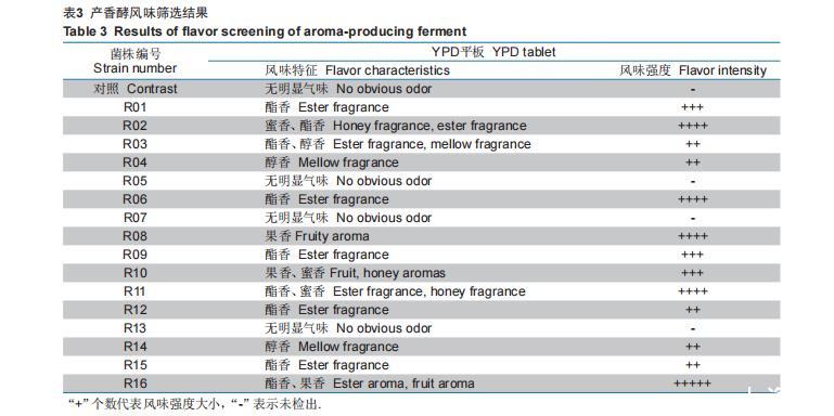 表3 產(chǎn)香酵風(fēng)味篩選結(jié)果
