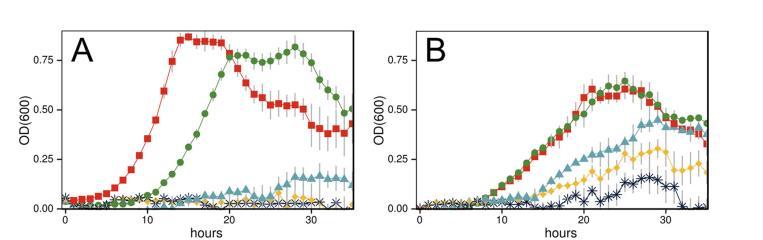 培養(yǎng)。C. phytofermentans ISDg (ATCC 700394) 在Coy厭氧工作站中,在1.5% H2/98.5% N2氣氛下進(jìn)行厭氧培養(yǎng)。培養(yǎng)物在30°C、pH調(diào)整為7的GS2培養(yǎng)基(18)中靜置培養(yǎng),并如文中所述補(bǔ)充碳源。生長動(dòng)力學(xué)通過密封的100孔微孔板(Bioscreen 9502550)中的600 nm光密度(OD600)監(jiān)測,如前所述(19);每次光密度測量前,對培養(yǎng)物進(jìn)行短暫搖晃以重懸細(xì)胞。用于底物消耗和發(fā)酵產(chǎn)物分析的纖維素、纖維二糖和葡萄糖培養(yǎng)物在100-ml血清瓶中生長,脫氣后用丁基橡膠塞密封。