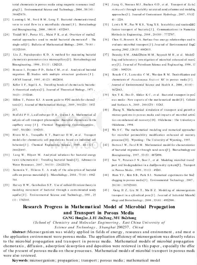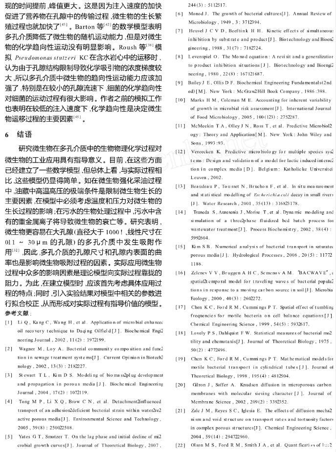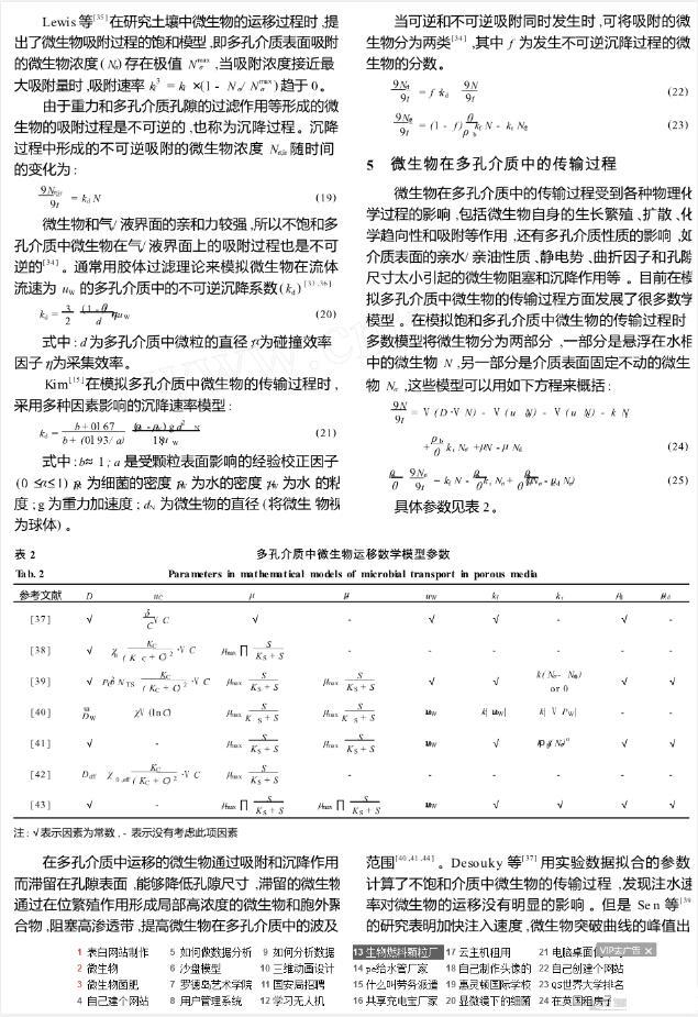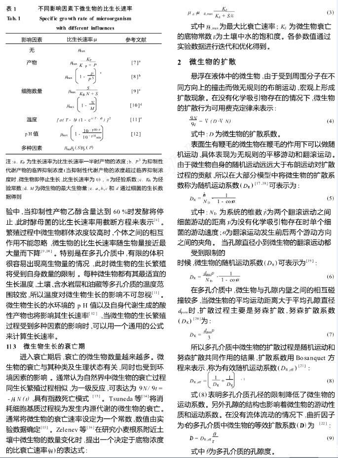 多孔介質(zhì)中微生物生長(zhǎng)行為和傳輸過(guò)程的數(shù)學(xué)模型研究進(jìn)展