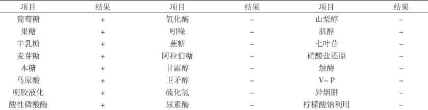 表1化膿隱秘桿菌HJ-1生化鑒定結(jié)果