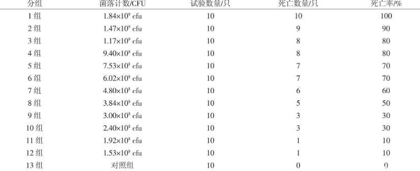 表3化膿隱秘桿菌HJ-1型感染小鼠半數(shù)致死量測(cè)定