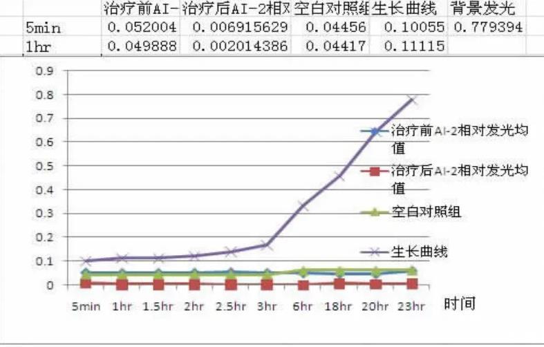 BF-,AI-2-菌株治療前后AI-2生長曲線和活性變化