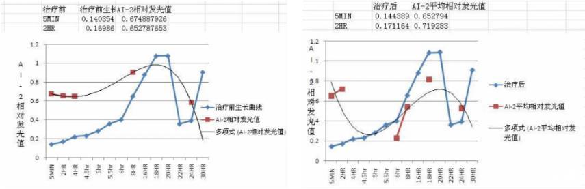 BF+,AI-2+菌株CRS患者治療前后AI-2生長曲線和活性變化