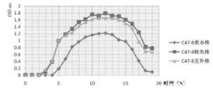 C47-8親本株、缺失株和互補(bǔ)株體外生長曲線的測定結(jié)果