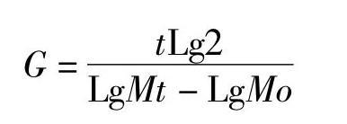式中,G為世代時間,t為培養(yǎng)時間,Mo為開始時的活菌數(shù),Mt為經(jīng)t時間培養(yǎng)后的活菌數(shù)。