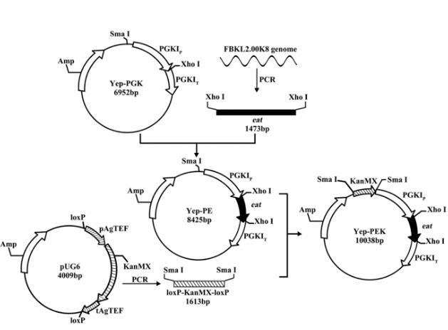 圖1、重組質(zhì)粒Yep-PEK的詳細(xì)構(gòu)建過程。