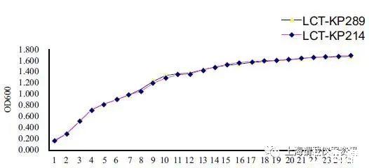 芬蘭的Bioscreen全自動生長曲線分析儀測試了兩種肺炎克雷伯菌(LCT-KP289、LCT-KP214的)在培養(yǎng)基中的的生長曲線圖,培養(yǎng)時間為25h,每隔60分鐘測試一次OD600值,培養(yǎng)過程中搖晃、生長及OD值的測試全是自動完成的,從而能夠長時間準確的測試出兩種不同類型的肺炎克雷伯菌的生長情況,獲得相應(yīng)的生長曲線圖。