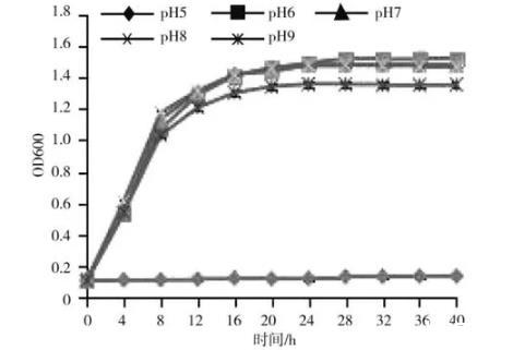 圖1不同pH值條件下FCX2菌株的生長(zhǎng)情況