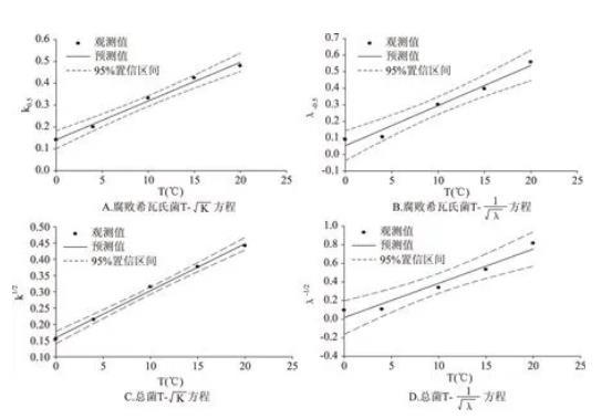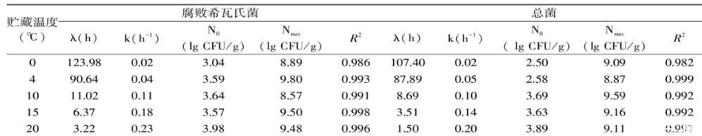 表2不同溫度下的腐敗希瓦氏菌和總菌的生長動力學(xué)參數(shù)
