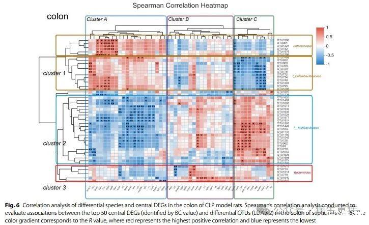 5、膿毒癥大鼠腸道轉錄組中特定細菌的不同相互作用
