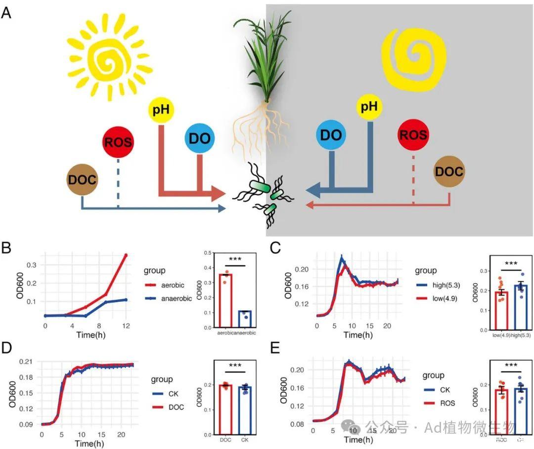 枯草芽孢桿菌的晝夜波動(dòng)生長(zhǎng)是由根際中溶解氧(DO)和pH值的變化所驅(qū)動(dòng)的