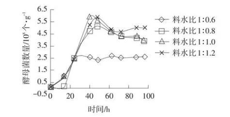圖1不同料水比條件下酵母菌的生長(zhǎng)曲線