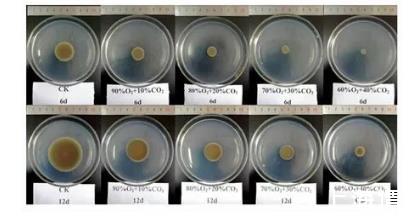 2.1 O2/CO2主動自發(fā)氣調(diào)對枝孢菌菌落形態(tài)的影響