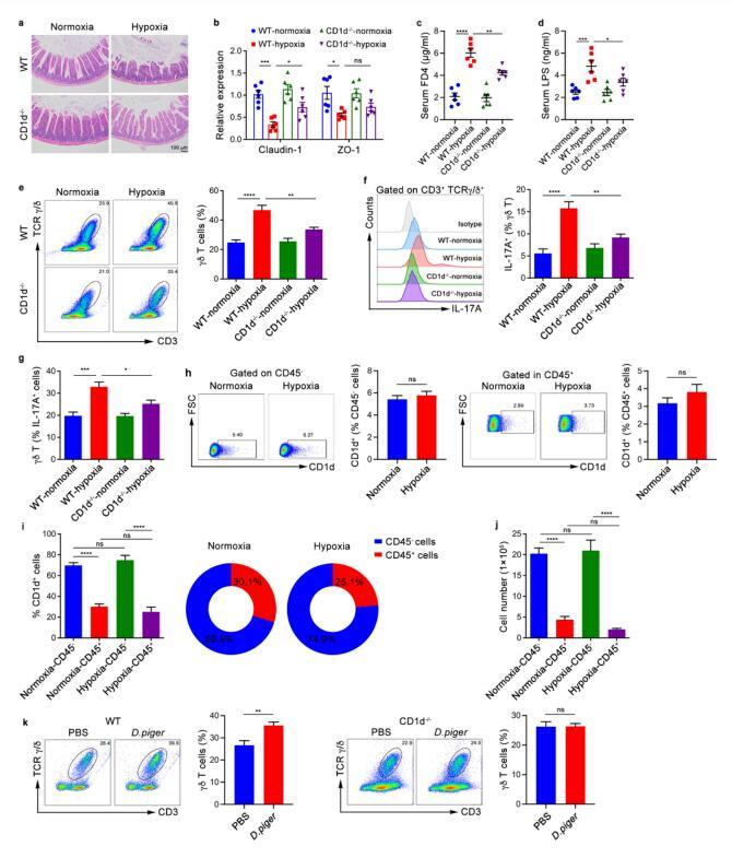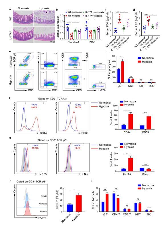 圖2:小腸上皮γδ T細胞的增殖和激活以及IL-17A的產(chǎn)生促進缺氧誘導(dǎo)的腸損傷