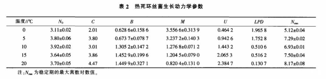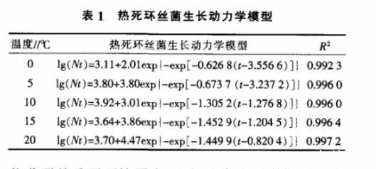 2.2 熱死環(huán)絲菌生長動力學(xué)模型的擬合及檢驗(yàn)