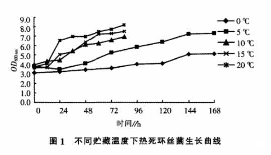 2.1 不同貯藏溫度下熱死環(huán)絲菌生長變化規(guī)律曲線