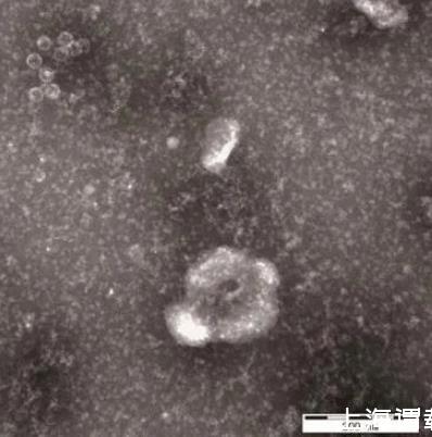 病毒分離株NM575接種MDBK細(xì)胞的上清,經(jīng)電鏡負(fù)染可觀察到無囊膜的球形病毒粒子,直徑大小約30 nm,與小RNA病毒粒子的特征相符(圖2)。