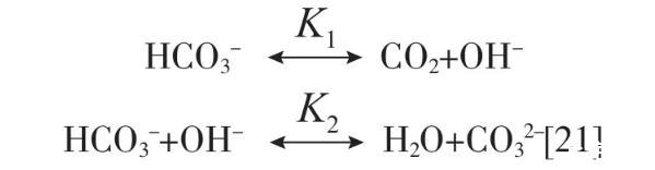 分析培養(yǎng)始末培養(yǎng)液的營養(yǎng)鹽濃度,結(jié)果見表5。經(jīng)過16 d的培養(yǎng),HCO3-和NO3--N濃度明顯減小,分別減少了83.13 mmol/L和124.34 mg/L,表明藻類利用HCO3-和NO3--N作為生長的碳源和氮源;CO32-濃度從初始30.60 mmol/L升高至77.75 mmol/L;培養(yǎng)過程中HCO3-濃度減少,CO32-濃度升高的原因是在水溶液中無機(jī)碳以CO2、HCO3-、CO32-這3種碳源形式存在,三者存在相互轉(zhuǎn)化的動態(tài)平衡:
