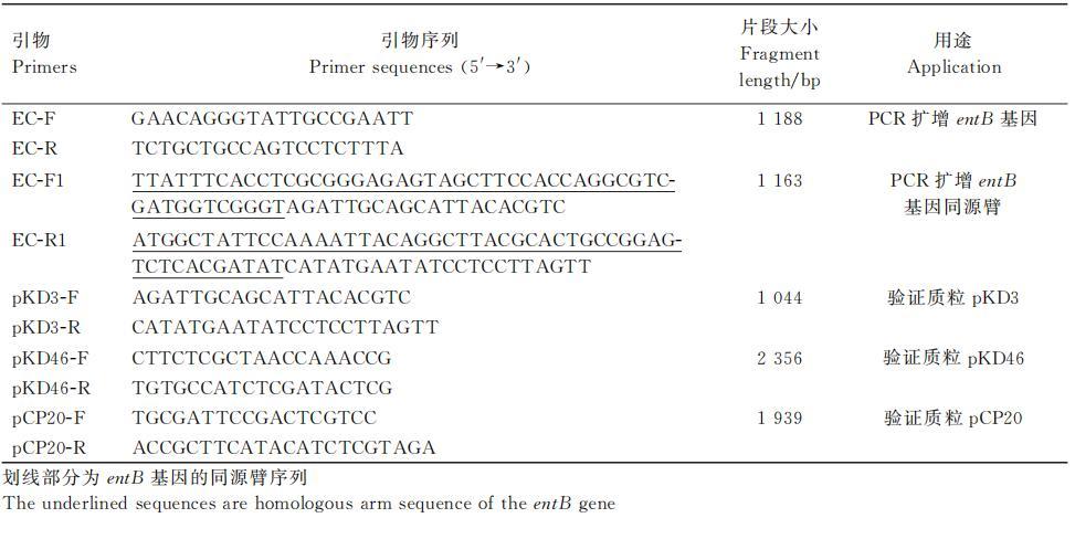 1.2.4 entB基因缺失株的構(gòu)建及鑒定