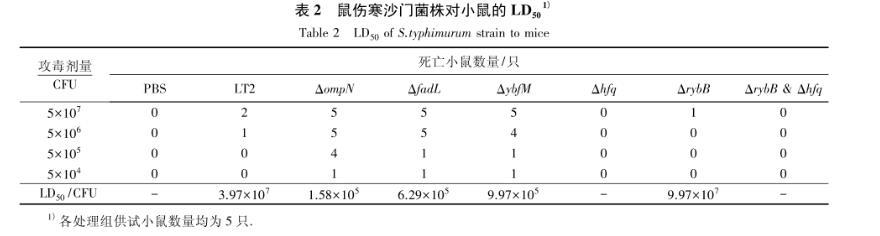 表2鼠傷寒沙門菌株對(duì)小鼠的LD501)