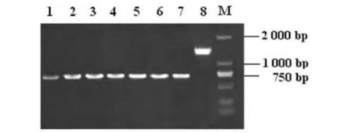 2.1成功制備t4606基因缺陷株首先利用自殺質(zhì)粒所具有的氨芐西林抗性,在含有氨芐西林的LB平板上篩選具有抗性的菌落,再進(jìn)一步篩選耐蔗糖的菌落。以篩選獲得的陽(yáng)性菌落DNA為模板,用t4606基因上、下游引物P1A和P2B進(jìn)行PCR擴(kuò)增,分析傷寒沙門(mén)菌t4606基因的重組變異情況。PCR擴(kuò)增檢測(cè)相應(yīng)菌落,直至篩選獲得連續(xù)傳代超過(guò)3次均僅有缺損片段的菌株。所獲得的菌株即為穩(wěn)定的t4606基因缺陷株。缺陷株及野生株P(guān)CR產(chǎn)物電泳結(jié)果見(jiàn)圖1。經(jīng)DNA序列分析,進(jìn)一步證實(shí)702bp處被BglⅡ核酸限制性?xún)?nèi)切酶的6個(gè)堿基酶切位點(diǎn)所替代。