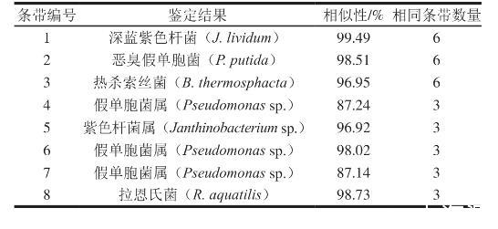表3 PCR-DGGE條帶的基因片段序列比對結(jié)果