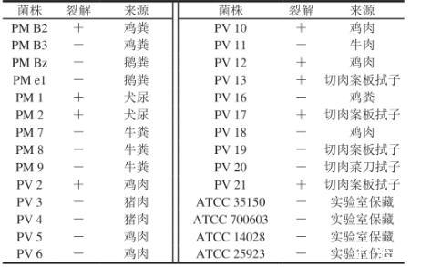 注:+.裂解,-.不裂解,PM.奇異變形桿菌,PV.普通變形桿菌。