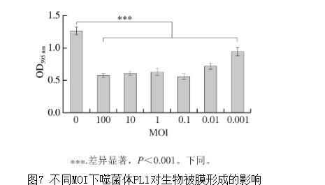 圖7不同MOI下噬菌體PL1對生物被膜形成的影響