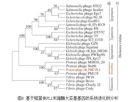 圖6基于噬菌體PL1末端酶大亞基基因的系統(tǒng)進(jìn)化樹分析
