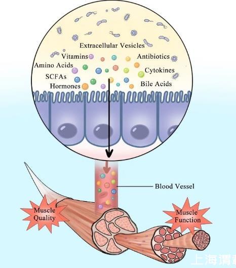盡管骨骼肌與腸道在生理結(jié)構(gòu)上存在距離,但研究發(fā)現(xiàn)二者之間通過(guò)大量信號(hào)分子建立了密切聯(lián)系。文章梳理了介導(dǎo)腸道微生物—肌肉互作的關(guān)鍵因素,歸納出包括短鏈脂肪酸、氨基酸、維生素、膽汁酸、抗生素、細(xì)胞因子、激素以及胞外囊泡在內(nèi)的八類主要介質(zhì)。
