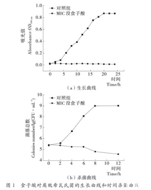 圖1食子酸對腐敗希瓦氏菌的生長曲線和時間殺菌曲線