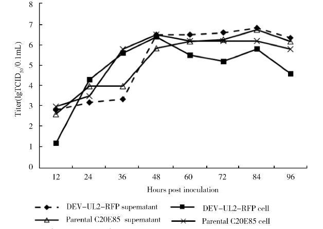 圖4重組病毒rDEV-ΔUL2-RFP的一步生長曲線
