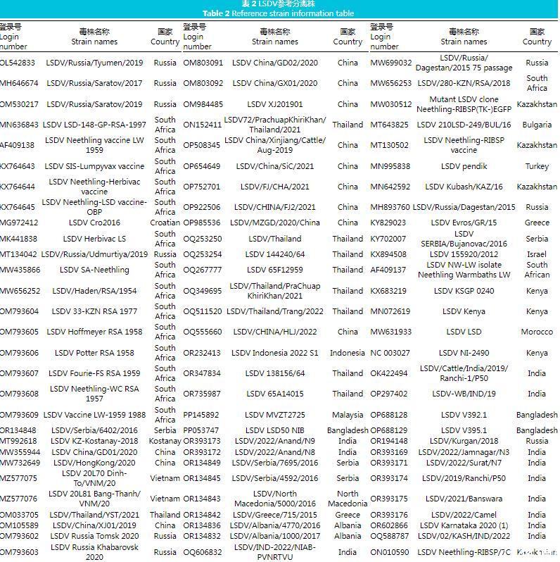 表2 LSDV參考分離株