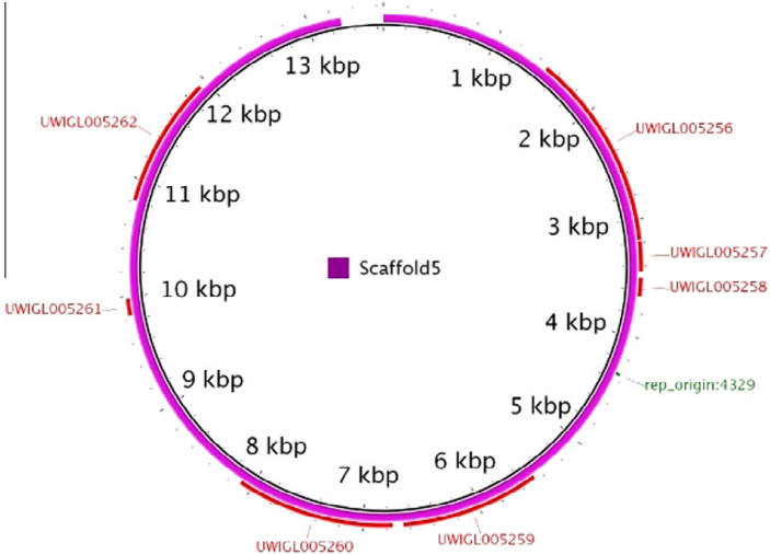 圖3、LCT-244支架5中潛在質(zhì)粒的物理圖譜。